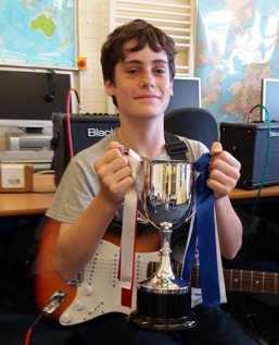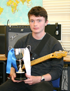As mentioned, Dorset Guitars promotes friendly competition, and major effort is recognised and rewarded. A continuously running competition is held, where students are under constructive assessment. They are assessed over the year on the following categories:- Attendance, Practice, Consideration, Development, Enthusiasm. A measure of an individual students performance is given termly, with the top three receiving prizes. The highest overall classifications of the year, pick up the DGs Trophies. We also have two further annual awards...... An award for Outstanding achievement on Guitar and Outstanding achievement on Bass Guitar.